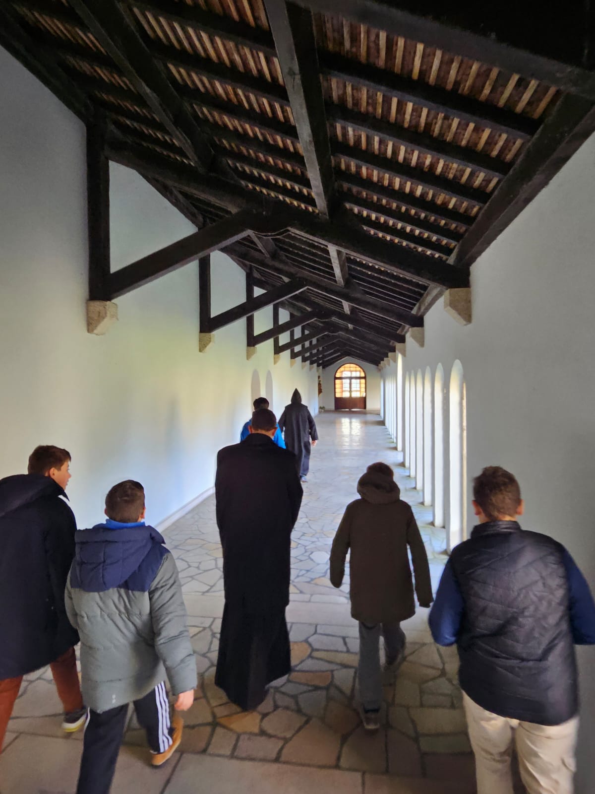 Aussitôt arrivés, le programme commence par la messe avec les moines, dans la crypte de la magnifique abbatiale romane. Puis, les garçons et les filles se séparent. Eux vont déjeuner avec les moines, dans leur réfectoire, elles retournent dans notre logement, pour un « repas monastique », simple, en silence, avec une lecture. L’après midi continue par une rencontre, les garçons avec un moine, les filles avec une moniale du monastère voisin de Bouzy-la-Forêt. L’occasion d’en savoir un peu plus sur la vocation monastique, sur la manière dont Dieu peut nous parler au cœur, dans le silence, en nous laissant toujours libre, pour être heureux.